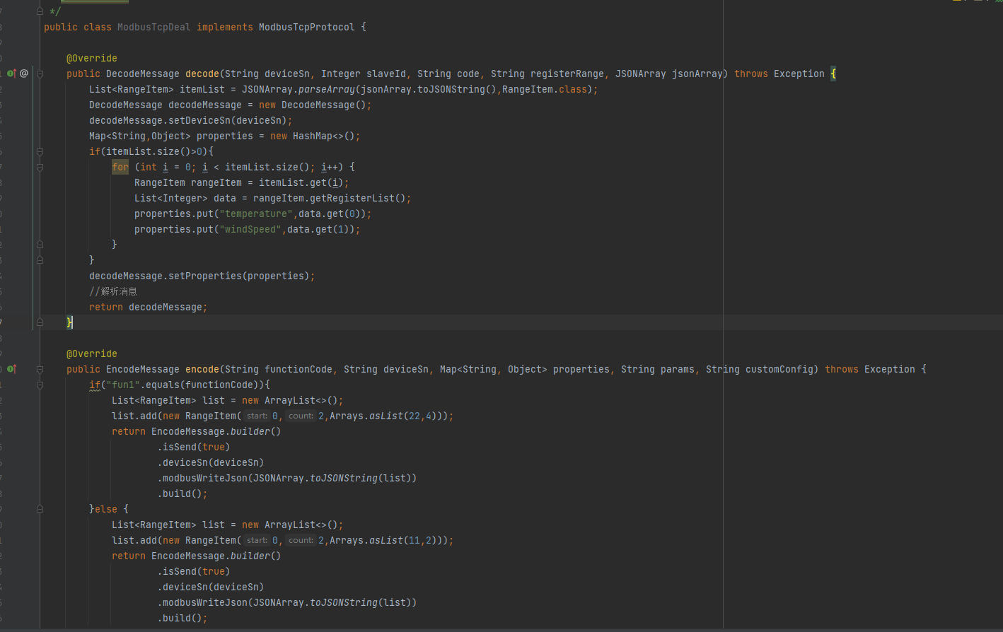 decode方法,每次扫描完一组寄存器都会调用一次decode方法,因此,可根据自定义的code和寄存器起始位置去解析。