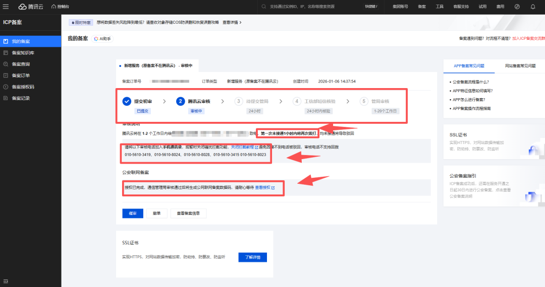 注意接听010区号开头的座机号码,这是腾讯云的初审,负责核实相关信息。