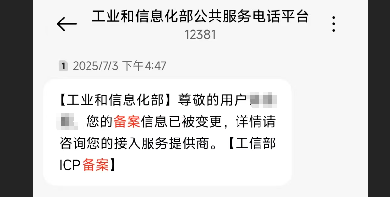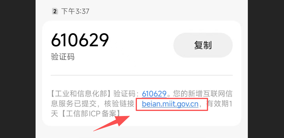之后就进入管局审核步骤,备案填写的手机号会收到一条短信验证码。