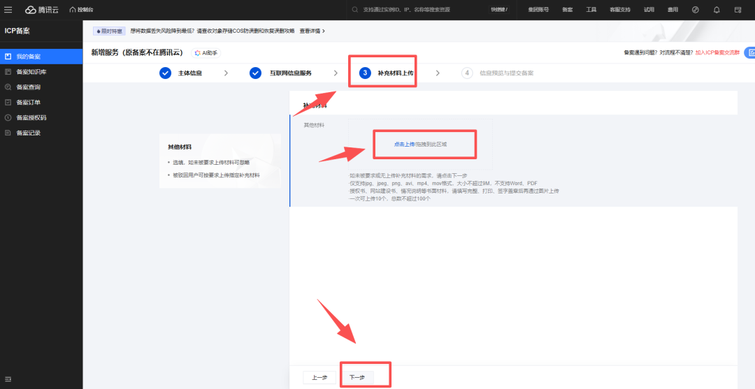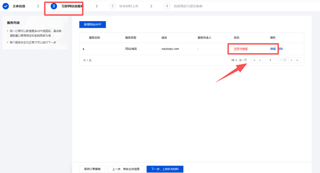 来到这个页面,确认主体信息、互联网信息服务相关信息、补充材料相关信息。