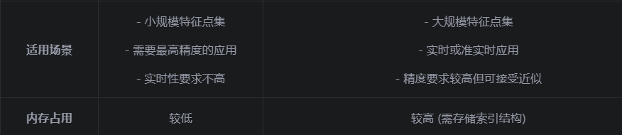 暴力匹配:精确但速度慢,适用于小规模特征点集