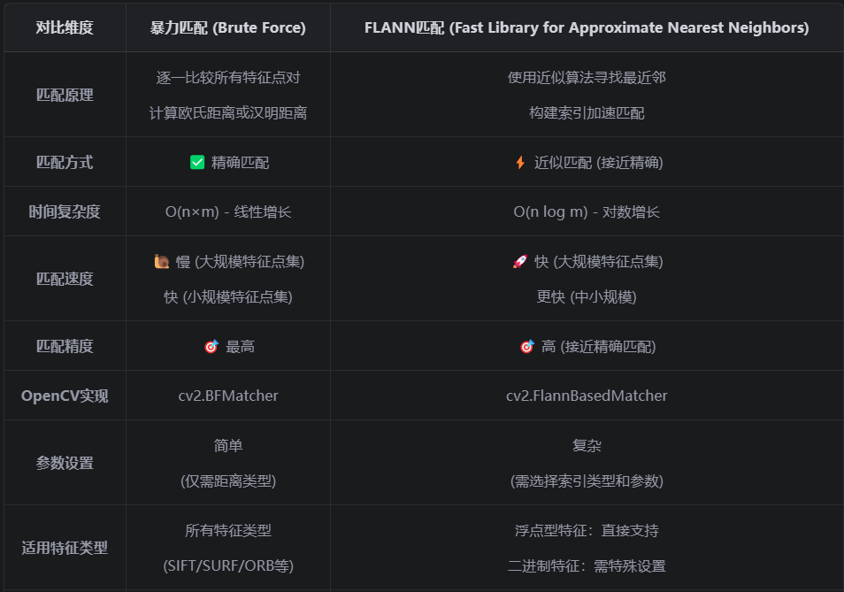 暴力匹配和FLANN匹配是OpenCV中两种常用的特征匹配算法,它们各有优缺点: