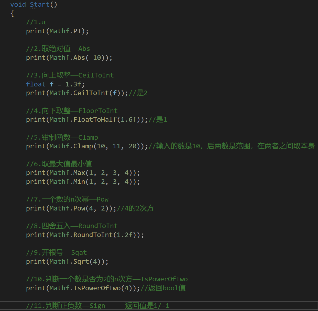 Mathf是Unity中封装好的方法,是一个结构体