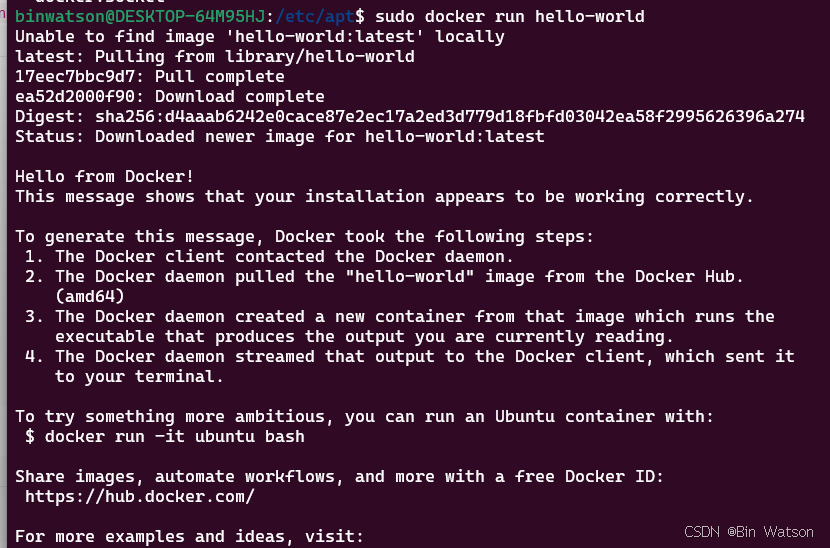 bashsudo docker run hello-world