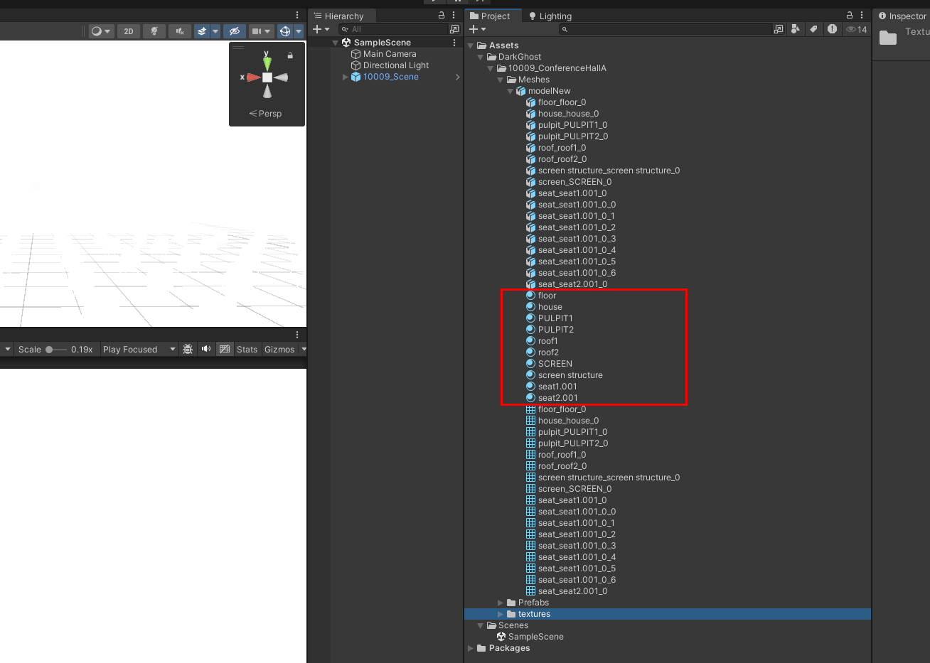 首先选中模型查看Inspector界面