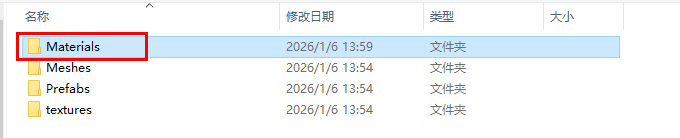 创建一个空的文件夹 命名Materials 用来存放解放出来的贴图材质