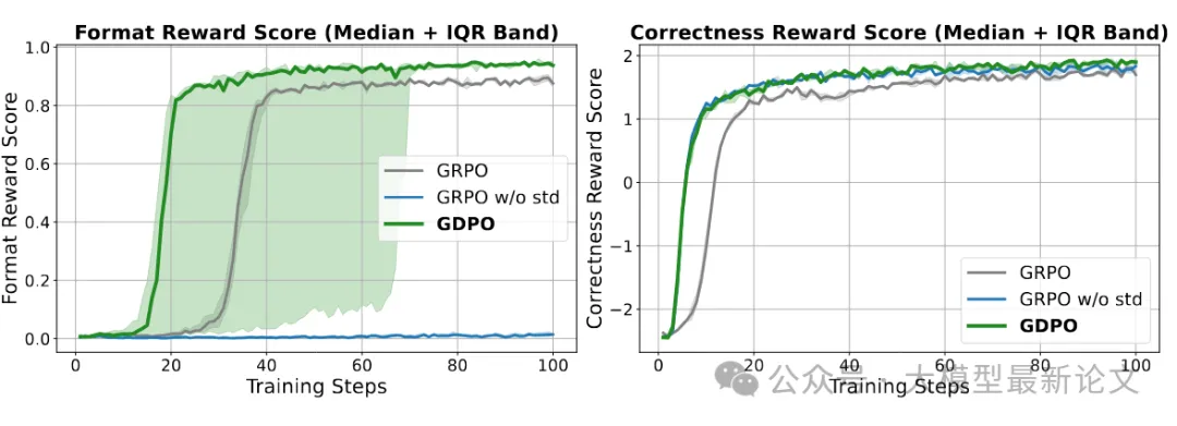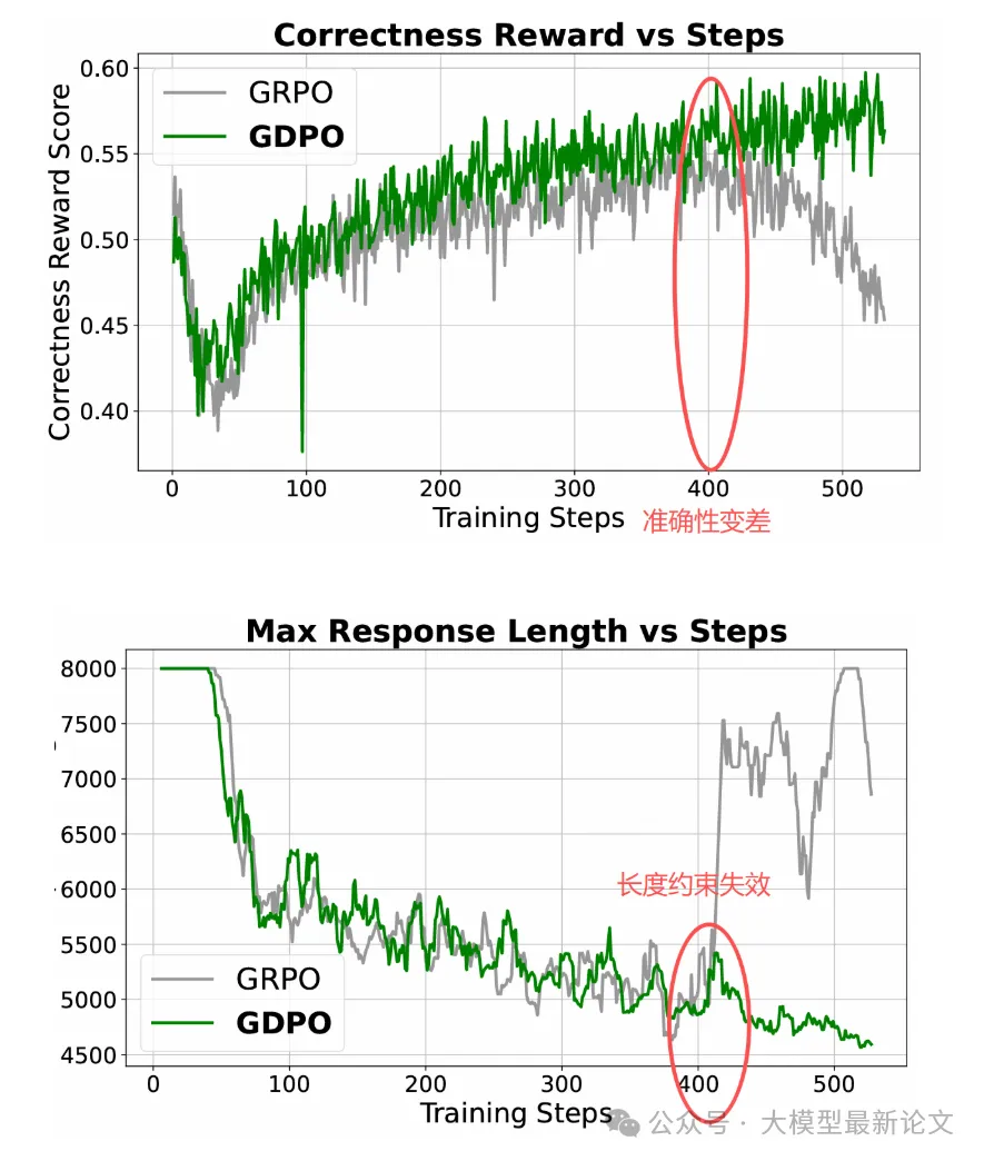 - 100-400步:GDPO 的正确性恢复更快,达到更高值