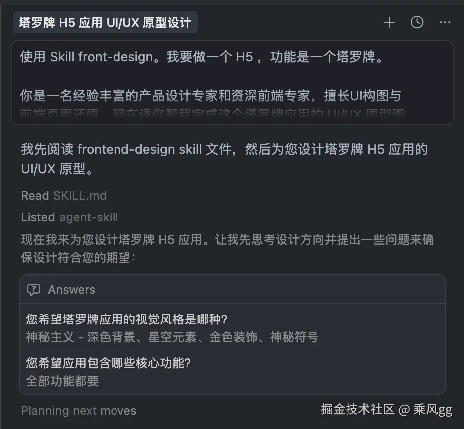 最近发现一个 AI 提效神器 ------Skills,用它配合 Cursor 开发,我仅用 5 分钟就帮女友做出了一款塔罗牌 H5 APP!在说如何操作之前,我们先大概了解下 Skills 的原理