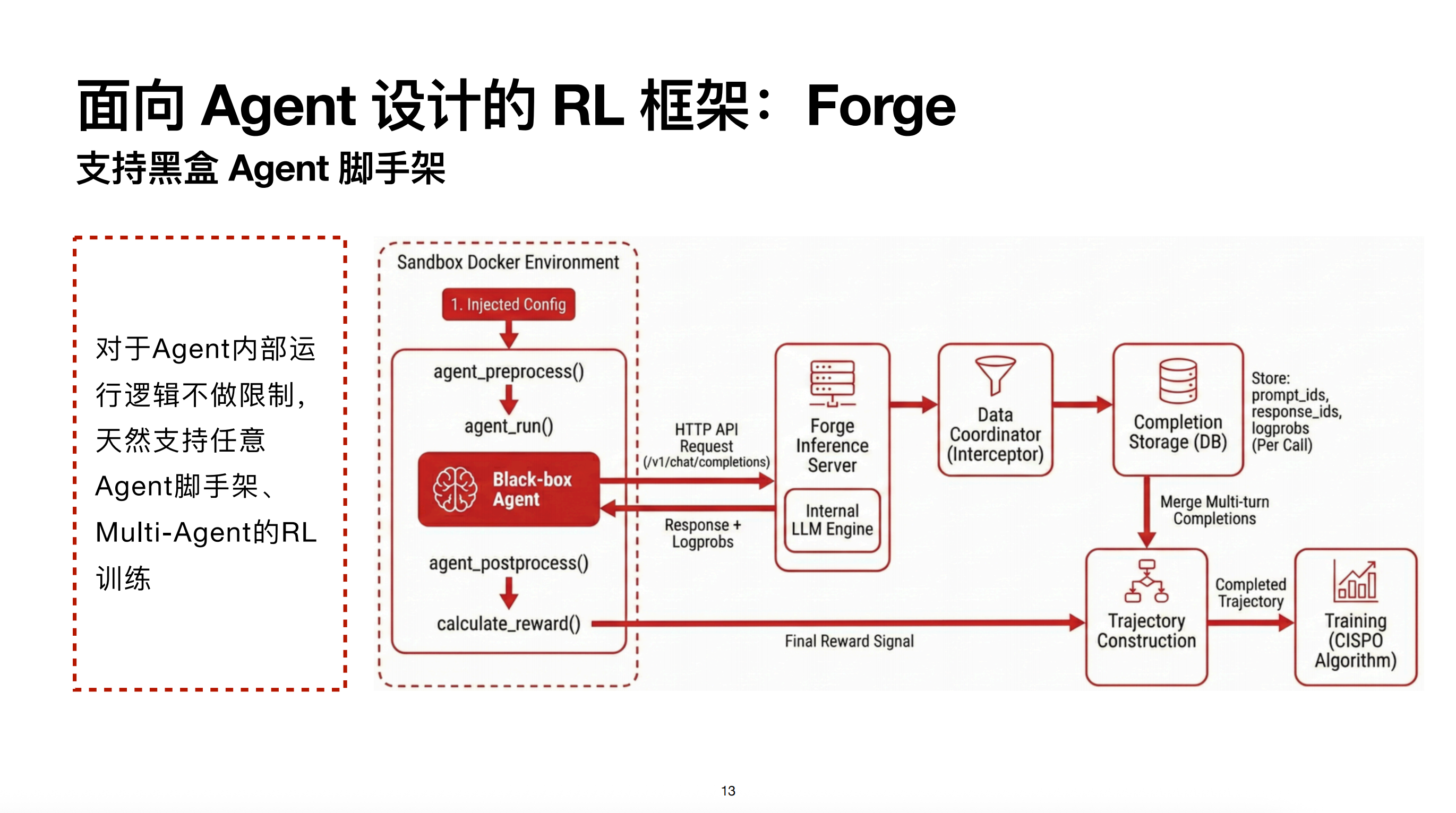 3、 工程复杂度:Agent 需要频繁与沙盒、API 等外部环境互动,整个训练链路的延迟管理和稳定性要求极高。