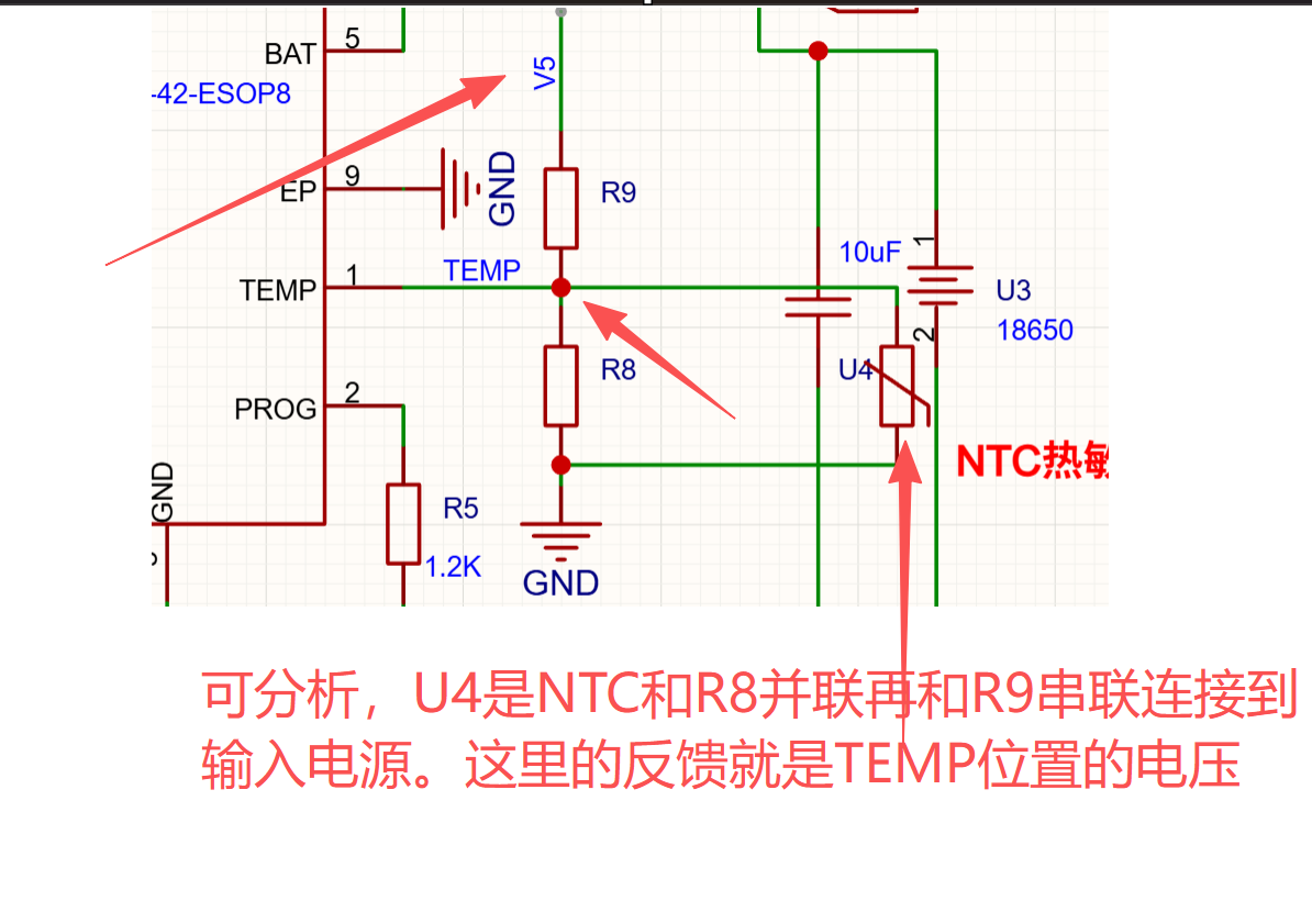 贴近电池需要一个热敏电阻,使得通过电压信号反馈到芯片引脚,进而保证充电温度的安全。