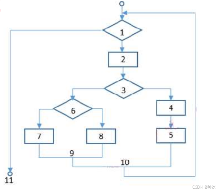 McCabe度量法:又称为环路复杂度,假设有向图中有向边数为m,节点数为n则此有向图的环路复杂度为m-n+2。