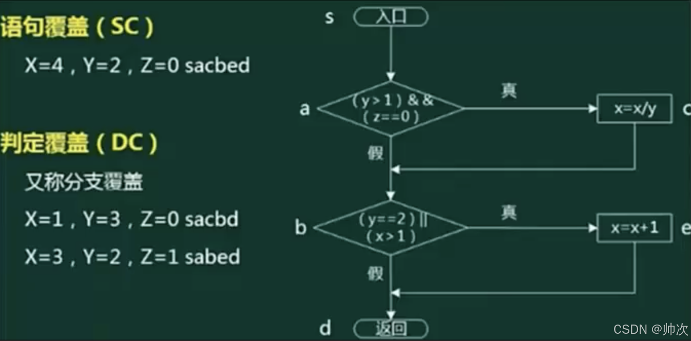 - (4)判定/条件覆盖:同时满足判定覆盖条件覆盖。
