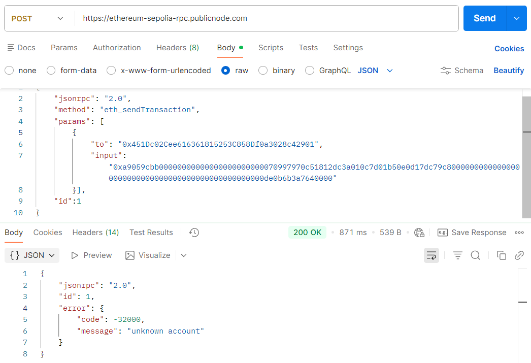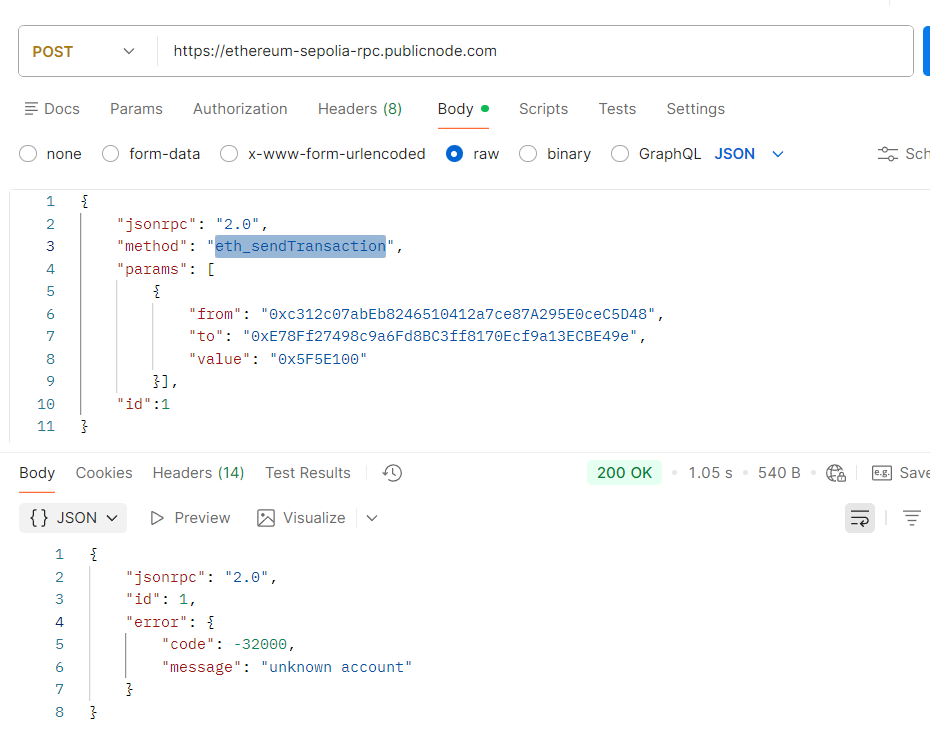 不支持eth_sendTransaction,sepolia网络不持有账户私钥,无法解析出账户地址