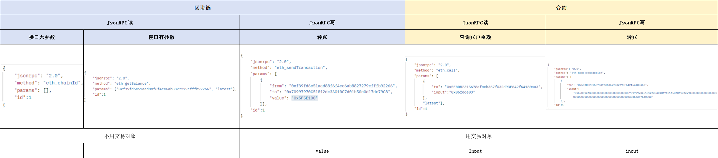 写操作会改变区块链\合约状态,需要签名等操作,JSON数据格式复杂。