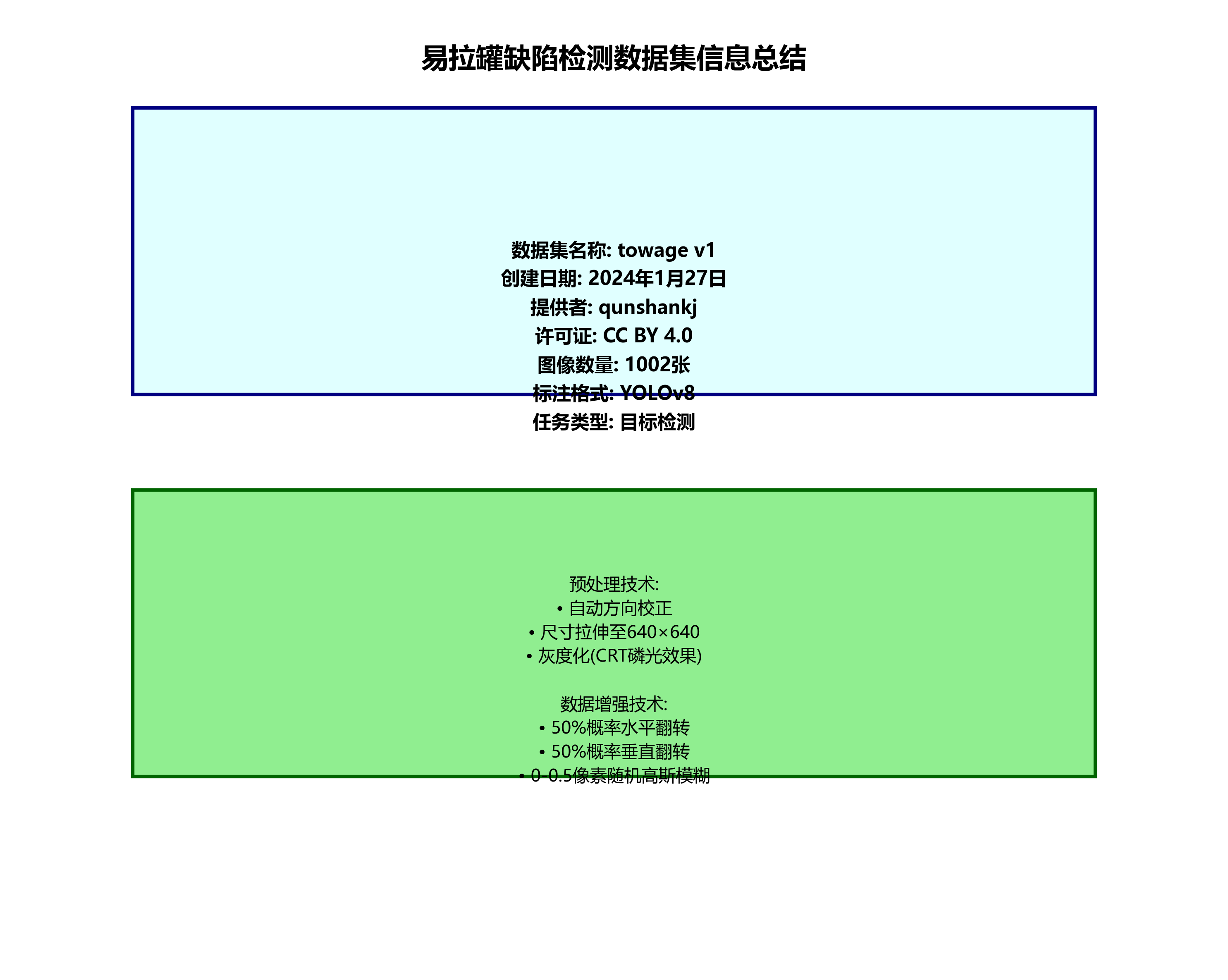 为了训练和评估我们的缺陷检测系统,我们构建了一个包含多种缺陷类型的易拉罐缺陷检测数据集。数据集采集自实际生产线上的易拉罐图像,通过人工标注的方式确定缺陷的位置和类别。