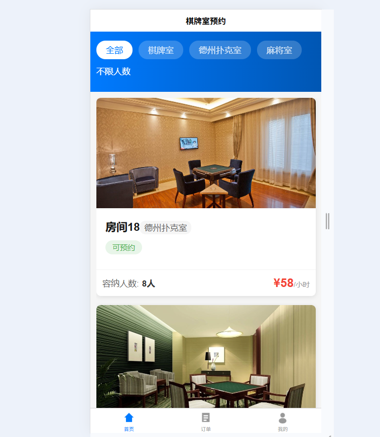 - 提供直观的棋牌室信息展示,包括房间类型、价格、状态等
