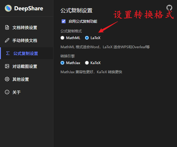 设置好后, 鼠标悬停在公式上方就可以点击复制转换为LaTeX