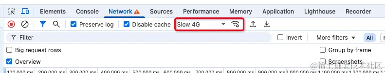 我们可以通过Chrome浏览器开发者工具中的Network中的网络配置来模拟弱网情况