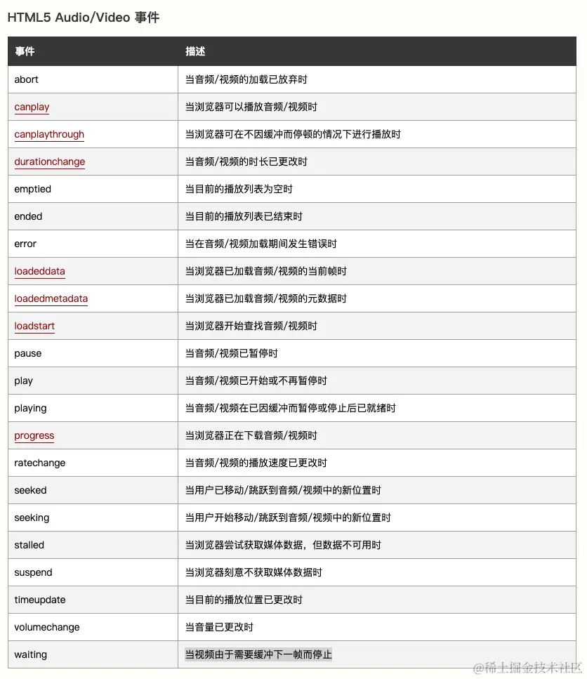 监听Video元素事件