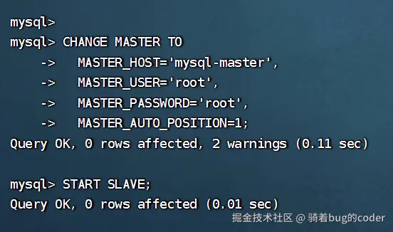 MASTER_AUTO_POSITION=1; -- 开启GTID自动找位点