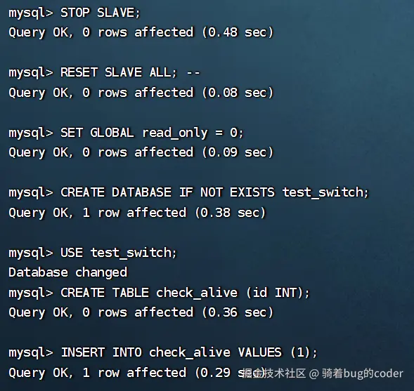 RESET SLAVE ALL; -- 清除从库配置,让它变身独立的主库