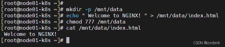 bashmkdir -p /mnt/data echo " Welcome to NGINX! " > /mnt/data/index.html chmod 777 /mnt/data cat /mnt/data/index.html Welcome to NGINX!