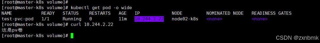 bash[root@node02-k8s ~]# echo "这是pv卷" > /mnt/data/index.html [root@node02-k8s ~]# cat /mnt/data/index.html