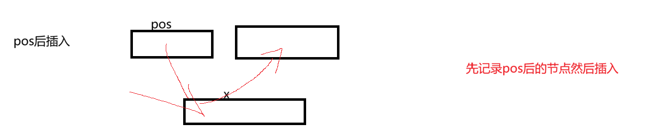 如果我们直接将pos->next修改为我们创建的新节点的话,那么我们之前的pos之后的节点就找不到了,所以我们要先记录下来这个pos之后的节点.