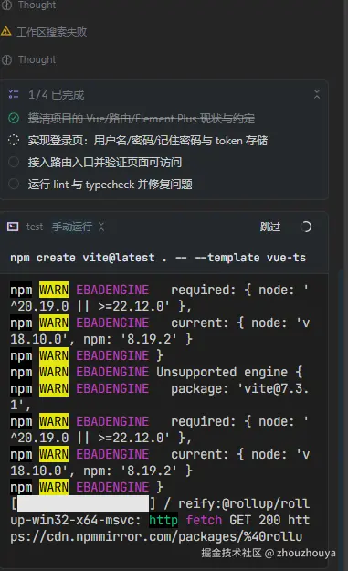 我输入了第一个指令:"帮我写一个登录页面"。结果TRAE给我生成了一堆看不懂的代码,还附带了一堆错误提示。首次使用体验感不佳。