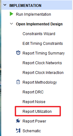 Open Implemented Design中的Report Utilization: