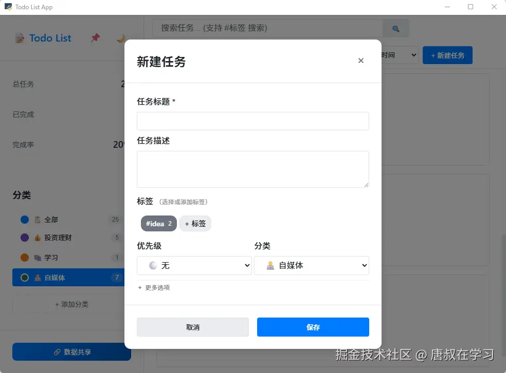 今天开发「Todo-List」应用新特性:任务支持配置标签功能。