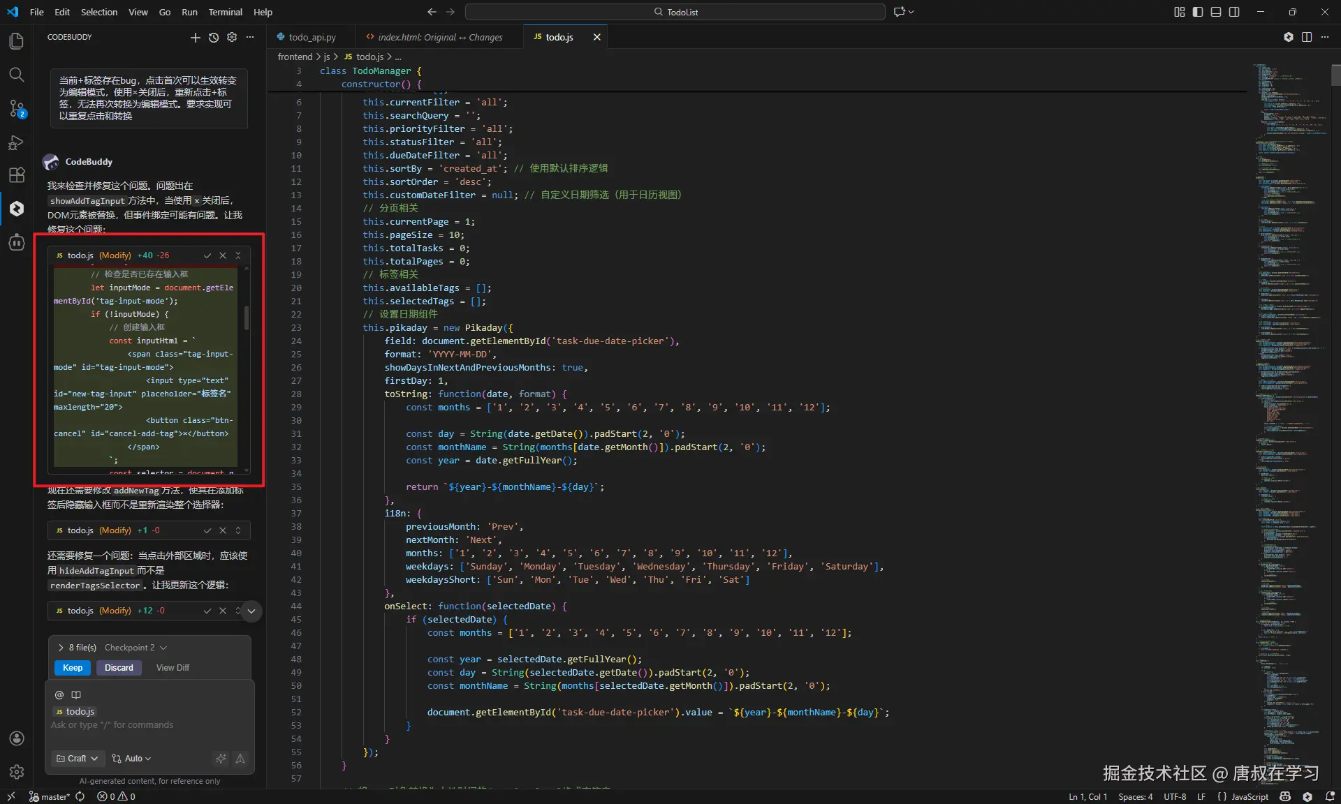 但是尬尴:重复点击【+标签】按钮,监听事件仅首次生效,后续点击都不生效。而且关键是给AI说明了问题场景后,AI没修复!