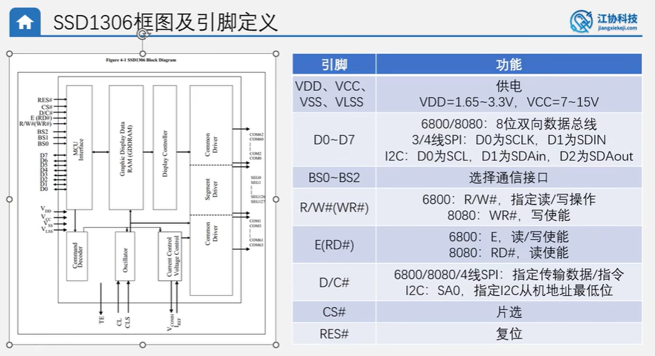 三、SSD1306框图及引脚定义