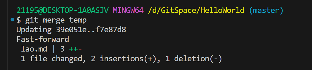 使用merge合并分支:
