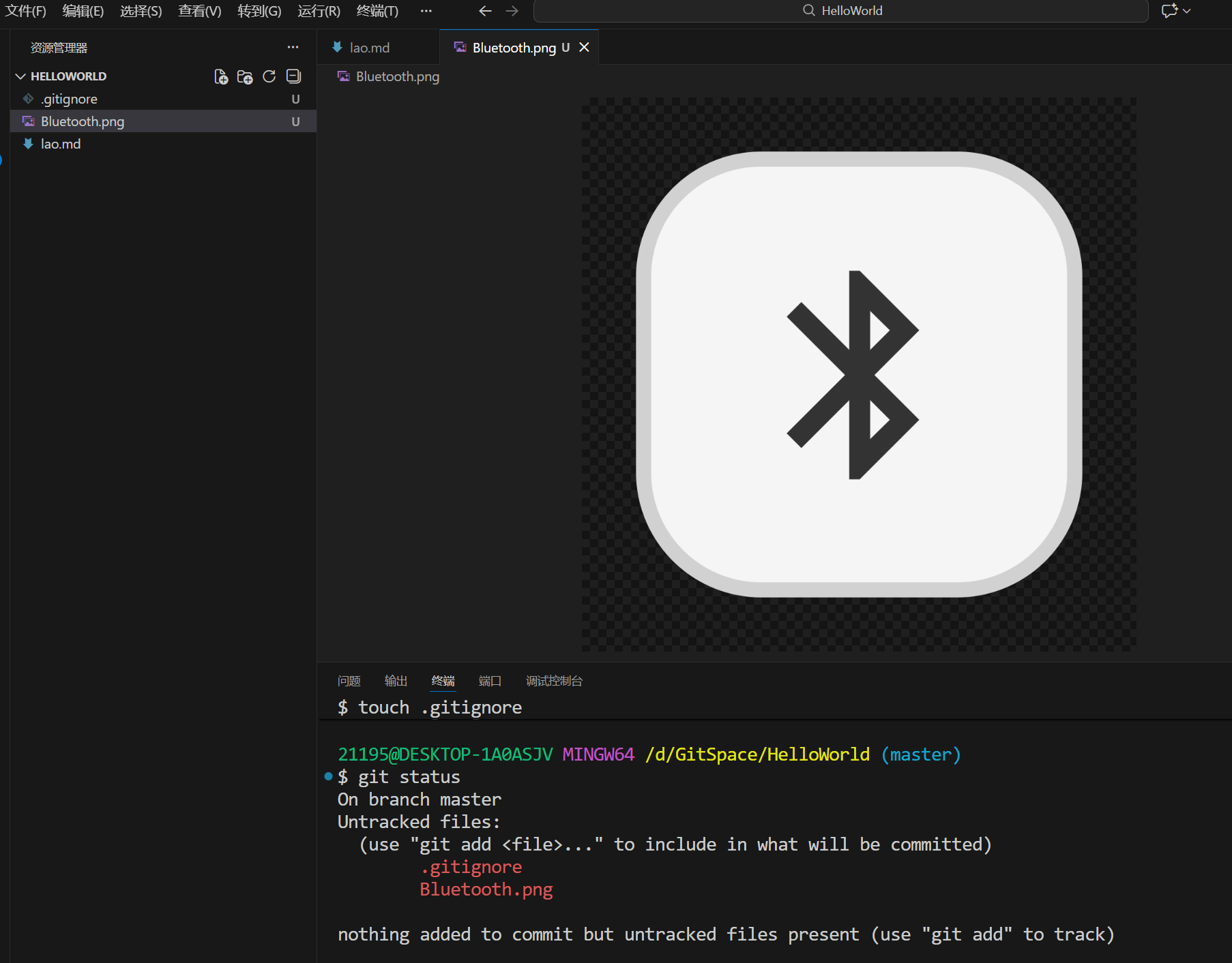 我这里放了一个蓝牙图标PNG,希望被git忽略,那么一个怎么操作呢?