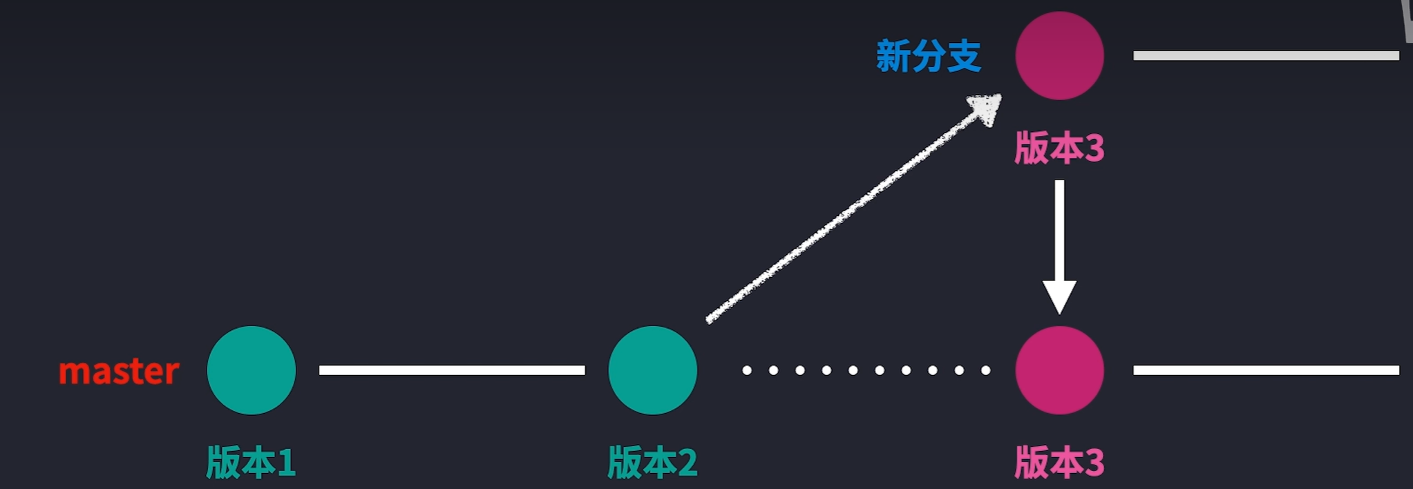 下面引入分支的概念,假设我们要扩充当前文件库,但是还不确定这些扩充的文件是否有用,我们就可以新开辟一个分支,等到一切就绪之后合并所有分支。