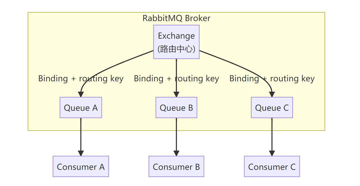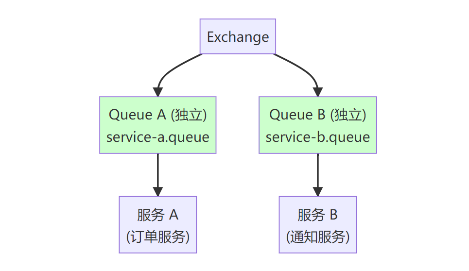 | 广播消费 | 每个消费者独立 Queue | fanout / topic | 事件通知、数据同步 |
