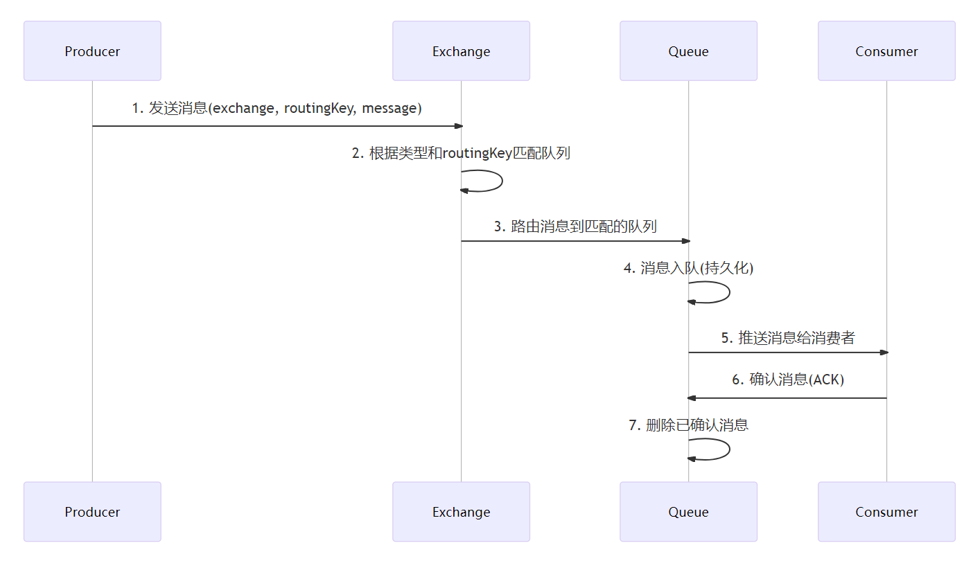 RabbitMQ 消息流转的核心链路: