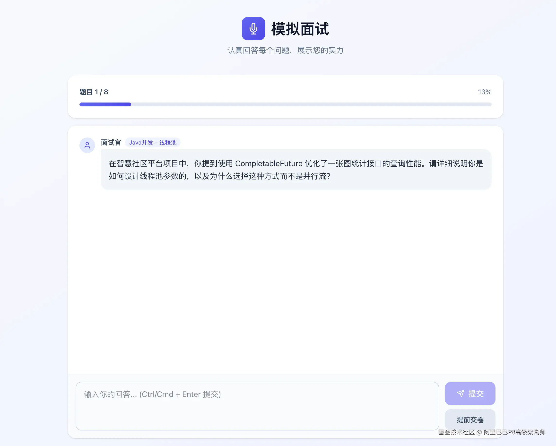 大家好!今天想和大家分享一个我近期开发的、非常有趣的全栈项目------智能AI面试官平台。这个项目不仅整合了当前最热门的大语言模型(LLM)技术,还巧妙地运用了向量数据库(pgvector)和 Redis Stream 异步消息队列,旨在为求职者和HR提供一套完整的智能化面试辅助解决方案。