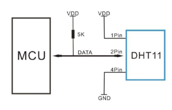 - 总线空闲状态为高电平,主机把总线拉低等待DHT11响应,主机把总线拉低必须大于18毫秒,保证DHT11能检测到起始信号。