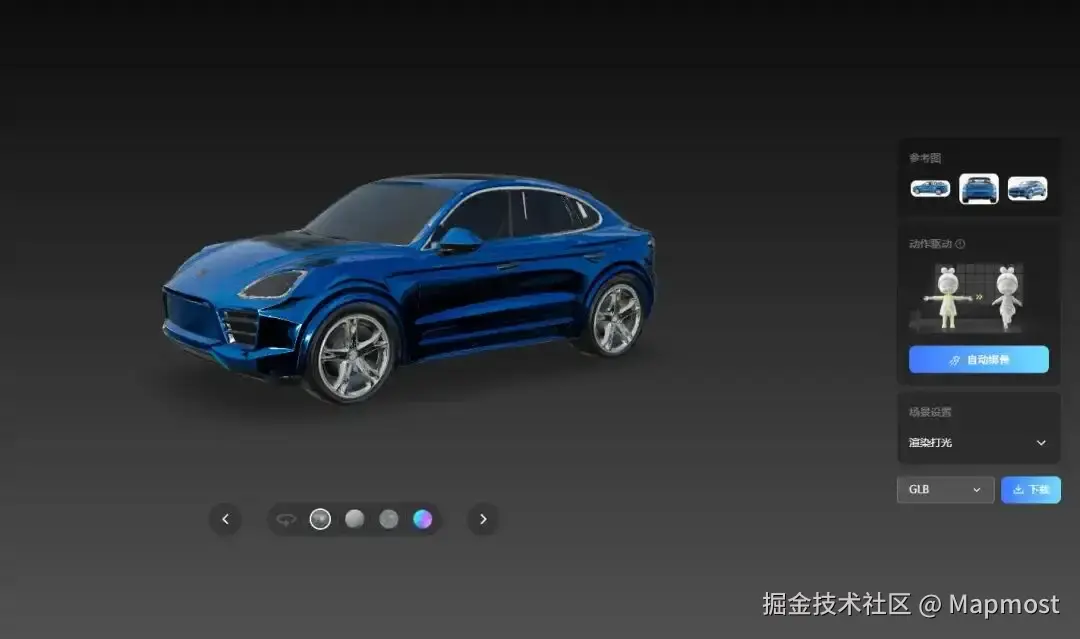 在Mapmost智慧收费站项目 中,这一点帮我们省了大功夫。项目需要大量不同类型的车辆模型来模拟收费流程,如果纯手工做,光是车型变化就要折腾好几天。用AI生成后,几分钟就能出一辆结构完整的车,样式、颜色还能根据场景需求调整。