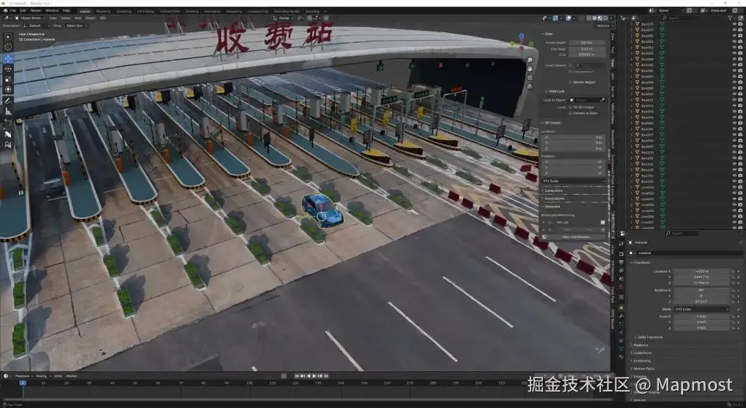 在Mapmost智慧收费站项目 中,实景三维模型 与手工精模需要衔接顺畅,但两者的纹理都来源于现场拍摄的照片,清晰度参差不齐。手工模型的材质细节不足,质感层级与实景模型对不上,放在同一场景中视觉差异明显。