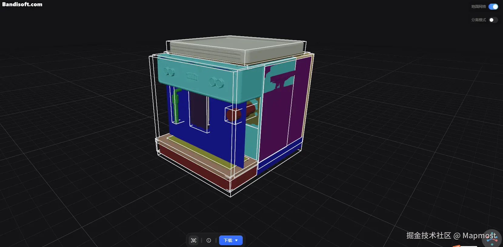 初期尝试文本生成模型时,纯文本输入如开盲盒,同一设备多次生成结果差异大 ,返工成本高 。转为图像输入(尤其是多视角照片)后,模型一致性 和结构比例 明显改善。部分AIGC三维模型生成工具已具备组件拆分功能,但实际使用下来,这类工具对角色模型的理解比设备类模型更成熟。