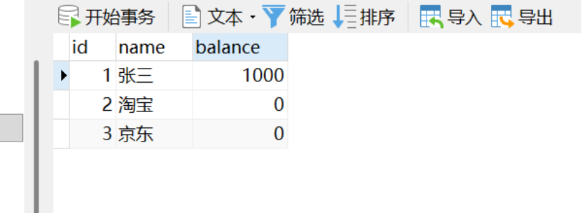 INSERT INTO `t_account` VALUES (1, '张三', 1000);