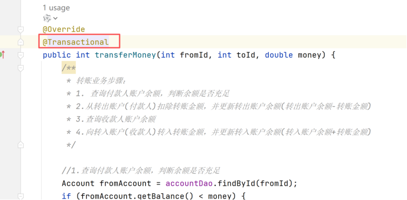 回到原始状态,加上事务,只需要加一个@Transactional注解即可