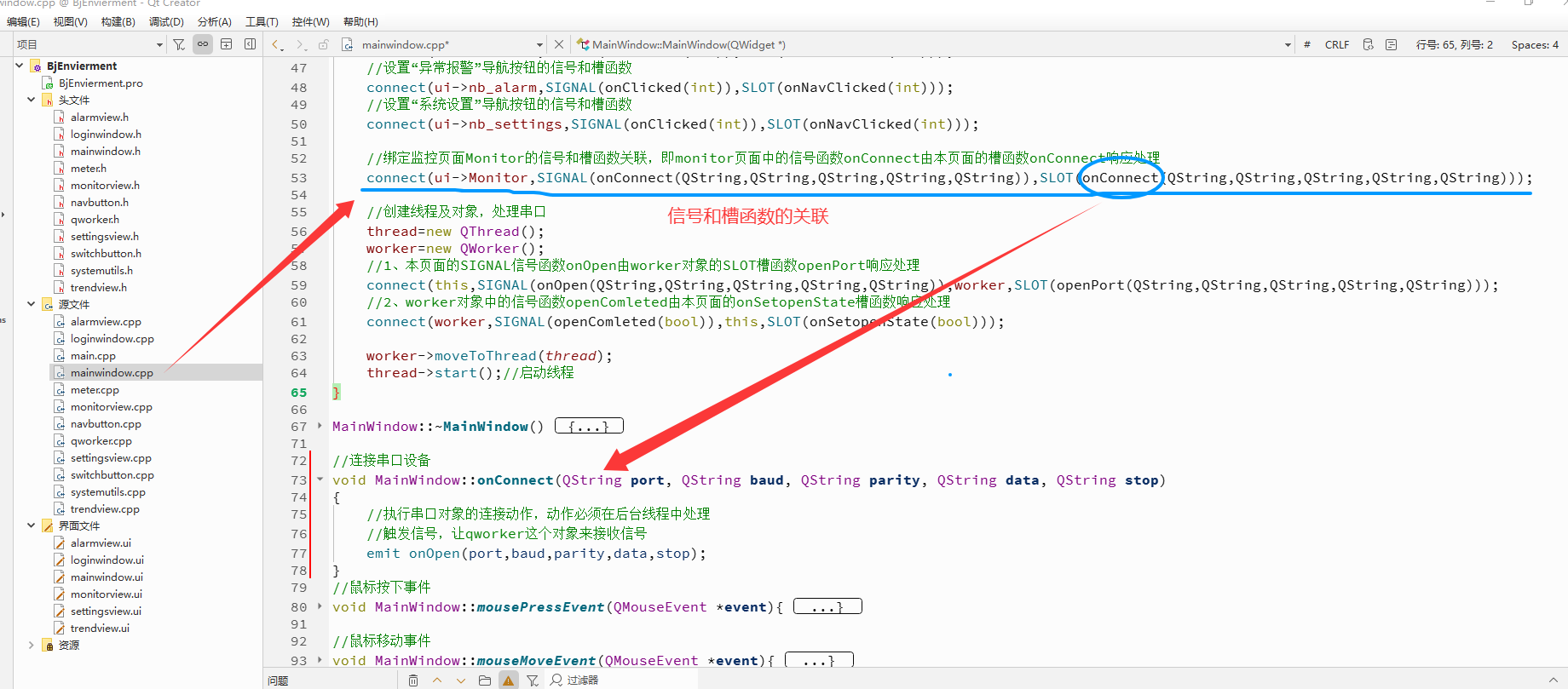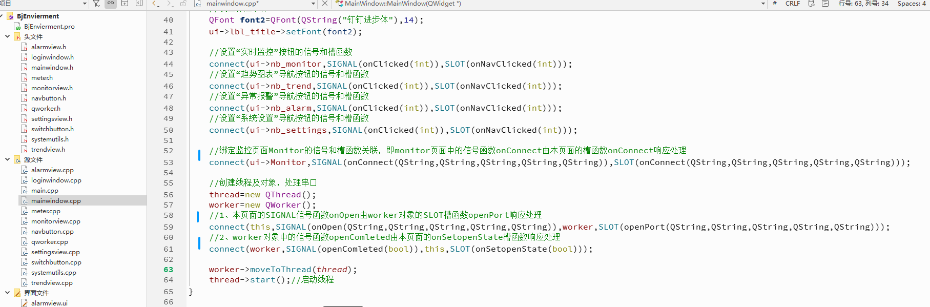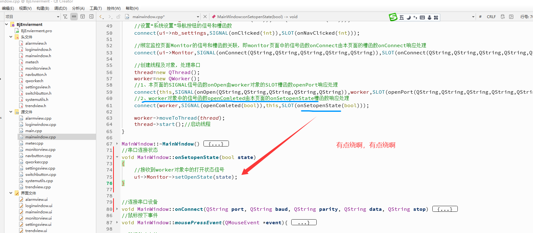 //1、本页面的SIGNAL信号函数onOpen由worker对象的SLOT槽函数openPort响应处理