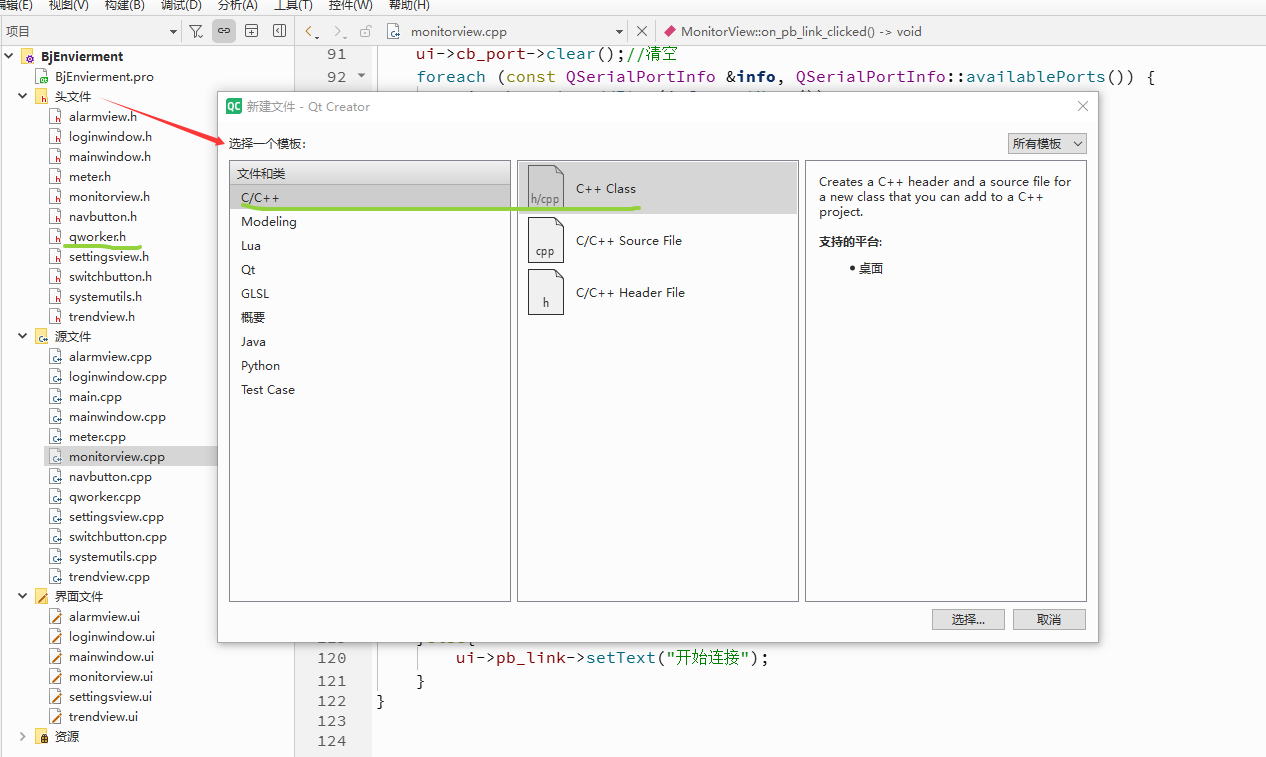 创建一个单独的类,这是一个多线程运行时需要的类对象,因为串口的操作需要单独放在线程中运行,因此要这么干。