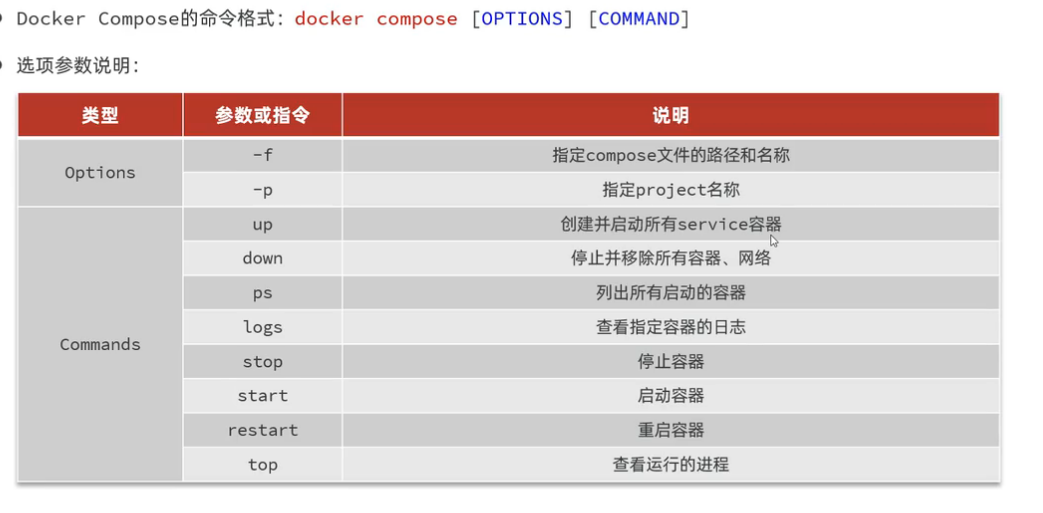 | Options | -p | 指定project名称。project就是当前compose文件中设置的多个service的集合,是逻辑概念 |