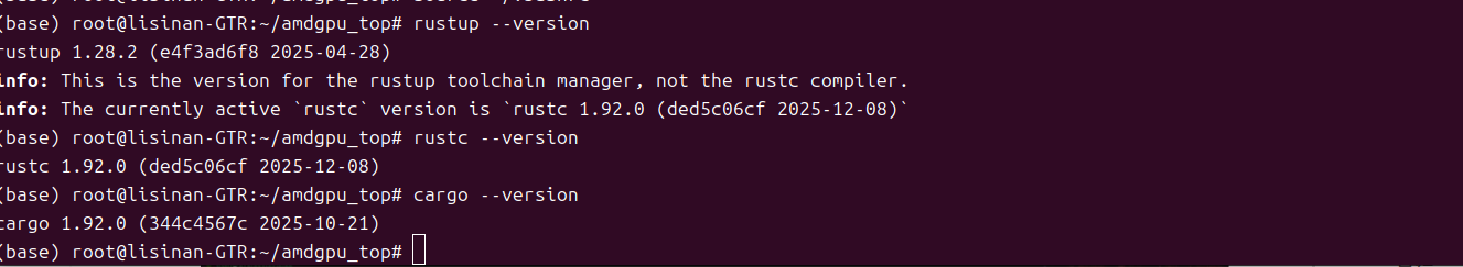 amdgpu_top是专门用于监控 AMD 显卡(适配 amdgpu 驱动)状态的工具,Ubuntu 24.04 默认 apt 软件源中没有该工具 ,无法直接通过apt install安装,需要通过源码编译或 AMD 官方工具包安装,其中源码编译是最稳定、适配性最强的方式。