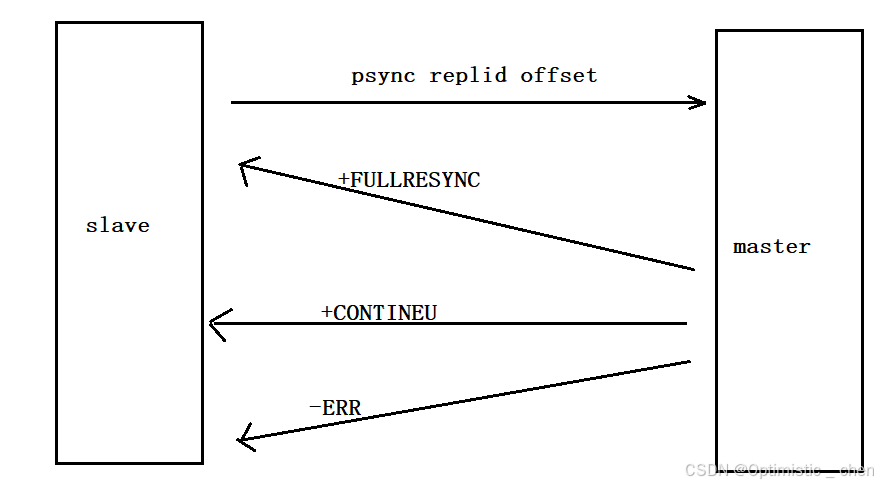 - 如果回复-ERR,说明Redis主节点版本过低,不⽀持psync命令。从节点可以使⽤sync命令进⾏全量复制(psync Redis会在主从复制模式下⾃动调⽤执⾏; sync会阻塞redis-server处理其他请求.psync则不会)